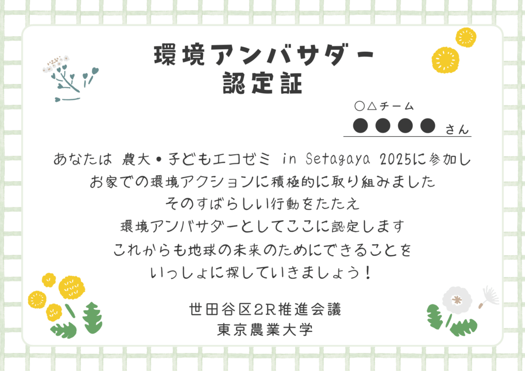 応募してくれたお二人には「環境アンバサダー認定証」を付与いたしました!
